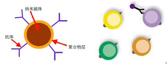 2、磁性微珠直接或者間接偶聯在抗體上,從而與細胞相連進行標記(如下圖);