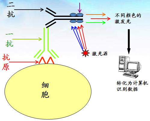 2、反應原理示意圖:熒光物質(FITC、PE等)