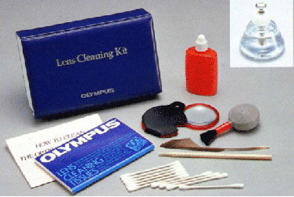 吹氣球,清潔液,棉花簽與軟木棍,擦鏡紙,軟紗布,放大鏡(可用目鏡代用),如下圖: