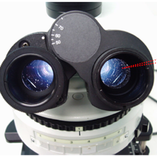 如圖1,當顯微鏡光源開啟時,將高倍物鏡轉入光路,將聚光鏡的孔徑光覽關小,通過目鏡觀察(如上圖2),光路中的臟物將出現。這些贓物可能存在于以下光學部件,目鏡、物鏡、觀察筒、或者一些中間光學組件中。我們可以單獨旋轉目鏡或者物鏡來判斷臟物,當單獨旋轉目鏡或者物鏡時,臟物轉動,那么臟物是在目鏡或者物鏡上,此時我們可以進一步拆卸目鏡和物鏡進行檢查并清除。如果轉動目鏡和物鏡時,臟物不動,那么臟物可能在觀察筒和中間光學組件中,此時我們可以轉動觀察筒來判斷,同樣我們也能找出贓物所在并清除。