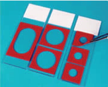 l  無需特殊載玻片,無需任何粘合劑,柔軟的硅膠圍欄使用簡單,貼吸性能強,形成疏水性的環繞樣本的試劑圍欄(試劑壩)