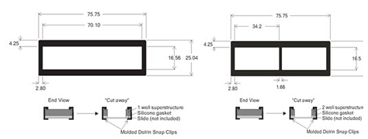 2 well ProPlate™slide module / 16.5mm X 34mm, DELRIN SNAP CLIPS |