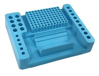 PCR實驗時不需要碎冰,直接用預先過夜冷凍的金屬臺子,可以對PCR實驗的試劑、樣品低溫保護,一般2-4°C可以保溫5個小時。可以放置91.5ml管、82ml管、50.5ml 管、一個96PCR板、一個50ml試劑槽。