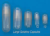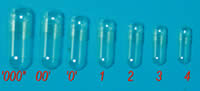 天然的、硬質明膠膠囊。小的膠囊常用作水溶性樹脂包埋的包埋模具,或者作為需要光固化樹脂的包埋用品(LR white 樹脂紫外固化)。明膠膠囊在0.5% HCl溶液里36-38°C時大約5分鐘溶解完畢(水中37°C或者人造胃液中大約2分鐘。大明膠膠囊Large Gelatin Capsules通??梢杂脕泶娣乓恍┬〉臉颖?,也可以作為石蠟包埋的包埋模具使用。