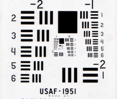 美國空軍1951年分辨力測試圖一直是世界上檢測垂直與水平分辨力的通用標準,是符合MIL-STD-150A標準的分辨力測試圖案,由美國空軍于1951年創建。1951 USAF分辨力測試圖目前仍廣泛地應用于測試光學成像系統(如顯微鏡和相機)的分辨能力。這種圖案包括幾組由三條短線構成組合,短線的尺寸從大到小。成像系統無法辯明的最大短線組為其分辨能力極限。