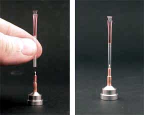 用帶有膠封的移液槍頭注射穩態溶液于塑料管中,接著開放端插位于Base上的MicroMount