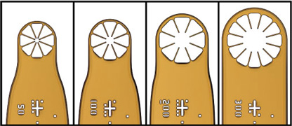 MicroGrippers™有四種規格:50μm, 100μm, 200μm, 300 μm,均安裝在柱形針座上,現貨提供的是安裝在SPINE(18mm)上的。