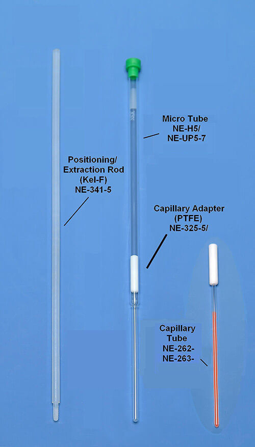 核磁管/毛細(xì)管套裝,包含一個(gè)核磁管(Micro NMR Sample Tube)、一個(gè)適配蓋子(one adapter)、一個(gè)拉取桿(one extraction rod)、5根毛細(xì)管capillaries。適于微量樣品15-115µl的測(cè)量。請(qǐng)參閱下表信息選擇最適合樣品體積和探針的核磁管和毛細(xì)管大小。樣品被放置在一次性毛細(xì)管中,對(duì)較小直徑樣品有著更好的分辨率。毛細(xì)管和管之間的殘余(環(huán)形)空間可以用其它材料填充,而不是直接將這些材料添加到樣品中。 這不僅使您的樣本盡可能集中,而且可用來(lái)1H19F2H測(cè)量。